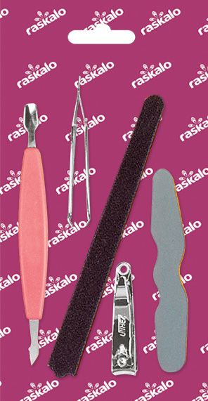 Contém: 1 espátula 1 Pinça 1 lixa 1 lixa para polimento 1 cortador de unhas